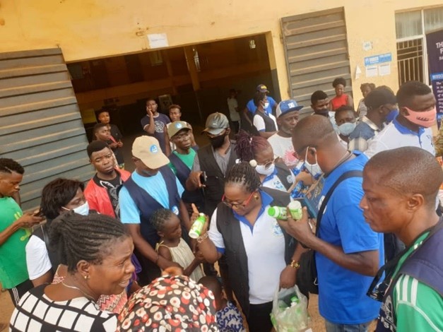 After Calabar, the next location for the food drive was Oban, a locality in Cross River State some 2 hours’ drive from Calabar. This locality harbors more than 3000 Southern refugees. The CRRI and TFF joint team made it to the locality on April 4, 2021, where refugees gathered at the Primary school field under the watchful eyes of a UNHCR protection partner, Caritas. The refugees came out in their numbers representing different communities around the Oban vicinity. During the symbolic handover, Dr. Sylvia Bolima of CRRI and Barrister Terence of TFF represented the leaders of both organizations, Dr. Celestine Atangcho and Dr. Christopher Fomunyoh, respectively. The food items distributed included bags of rice(100kg), bags of garri(100kg), bags of salt, cartons of Indomie (noodles), cartons of Maggie cube, cartons of table oil, pallets of Nutrimilk, and cartons of biscuits for kids.