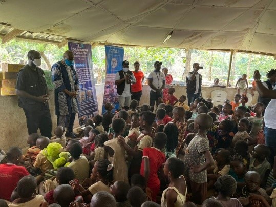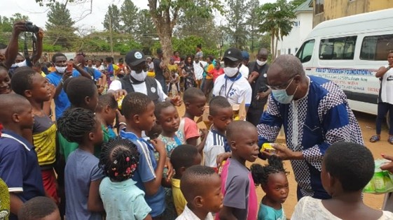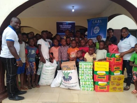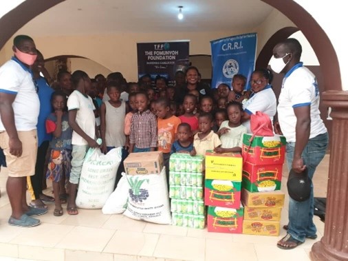 The last stop of the April 2021 CRRI/ TFF food drive was at the Kids of Tomorrow Foundation orphanage AT Ikom, run by a Southern Cameroonian philanthropist. The CRRI and TFF team visited the orphanage on April 10th, 2021. The kids and their matrons welcomed the team on the ground and a little candy party was held during which the kids received nutimilk and biscuits. The items provided consisted of a 50kg bag of rice, a carton of Maggie, cartons of indomie(noodles), cartons of biscuits, a bag of salt, pallets of nutrimilk, and a bag of garri.
