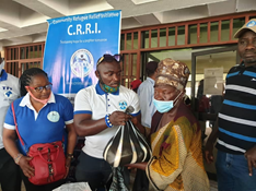 CRRI Symbolically Handing staple food to Refugees at Calabar under the watchful eyes of the representative of the DG of Cross River State Emergency Management Agency, SEMA