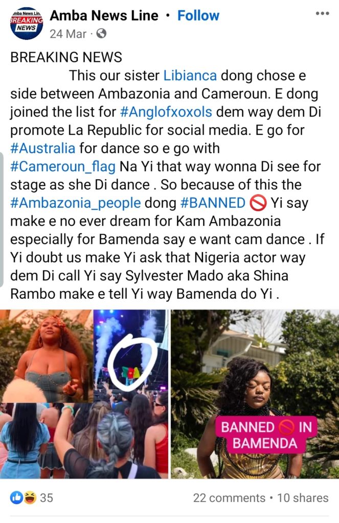 Libianca said the threats multiplied after her Australian tour but she is hopeful that peace will one day return to the two regions and Cameroon will remain United Republic.