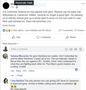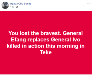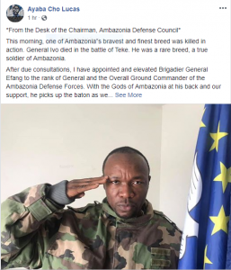 When the news broke out, the Chairman of the Amabzonia Governing Council, Ayaba Cho Lucas posted on his official Facebook page announcing the demise of the General and appointment of now called General Efang.