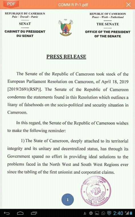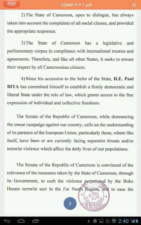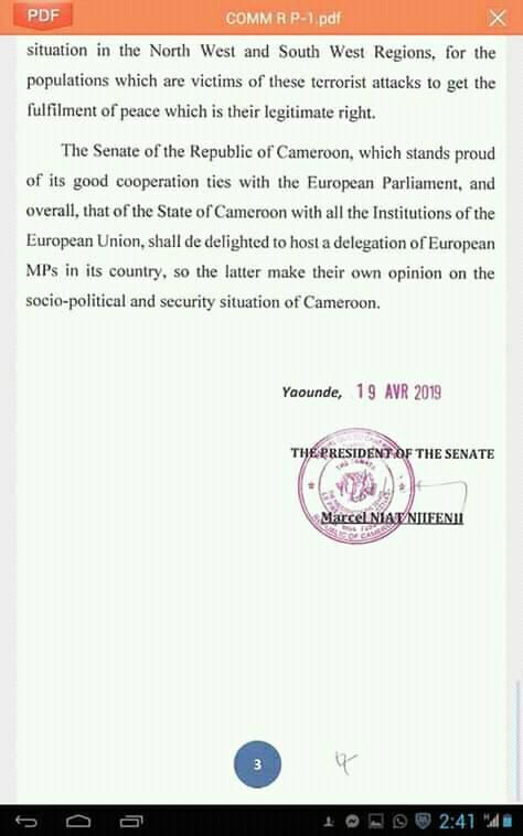 The Octogenarian went further to invite a delegation of the EU Parliament for a working session in Cameroon to see for themselves the socio-political situation.