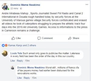 MAROUA,Far North-Monday May 7, 2018-3 PM Local Time (Cameroon News Agency) University Authorities in Maroua, Far North Region have rough handled a reporter of Canal 2 International, Andre Mirabeau Mahop, for taking images of an uncompleted play ground, days after the kick-off of the 2018 Varsity Games.