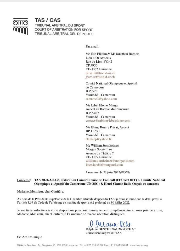 The Court of Arbitration for Sports has once again postponed the date for the judgement in the issue opposing the Cameroon Football Federation to some members of its general assembly. The case was tabled in 2009 and since then it has been a series of back-and-forth’s worthy of a Netflix series in Lausanne, Switzerland. It was explained that the delay is as a result of permanent developments in matters concerning the federation as far as the final ruling is concerned. This time, July 30th has been given as the date for the court’s final ruling.