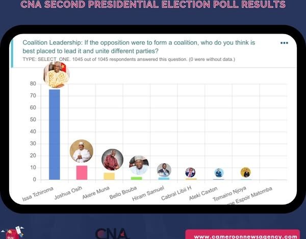 A second poll conducted by Cameroon News Agency on the presidential election in Cameroon revealed that most Cameroonians prefer opposition leader and president of the National Salvation Front of Cameroon, Issa Tchiroma Bakary, to be the coalition leader.