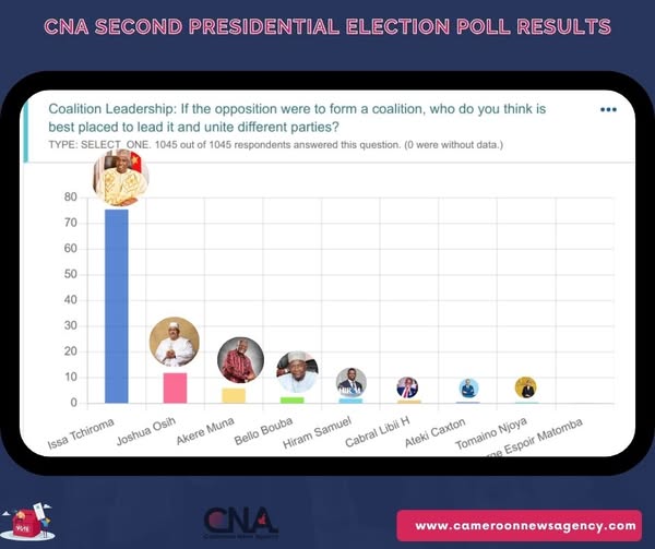 A second poll conducted by Cameroon News Agency on the presidential election in Cameroon revealed that most Cameroonians prefer opposition leader and president of the National Salvation Front of Cameroon, Issa Tchiroma Bakary, to be the coalition leader.