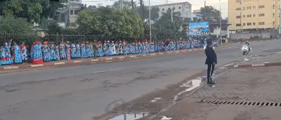 Despite this, there was a heavy police and gendarme presence along the road from the airport and from the party’s residence in Deido to the scheduled location for the visit.