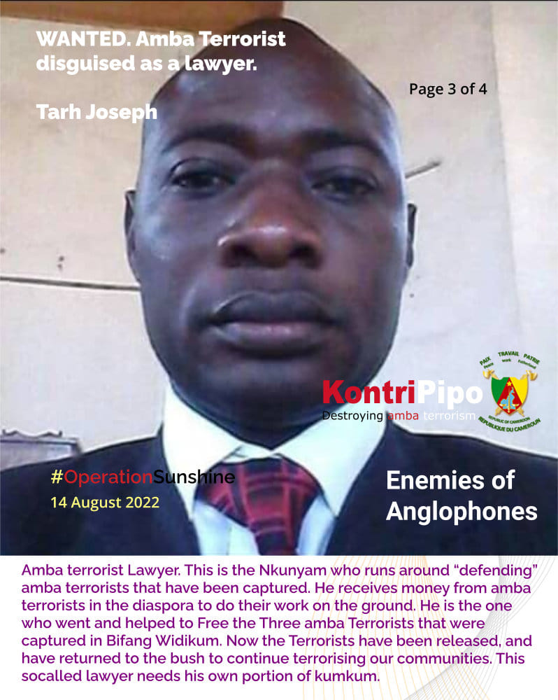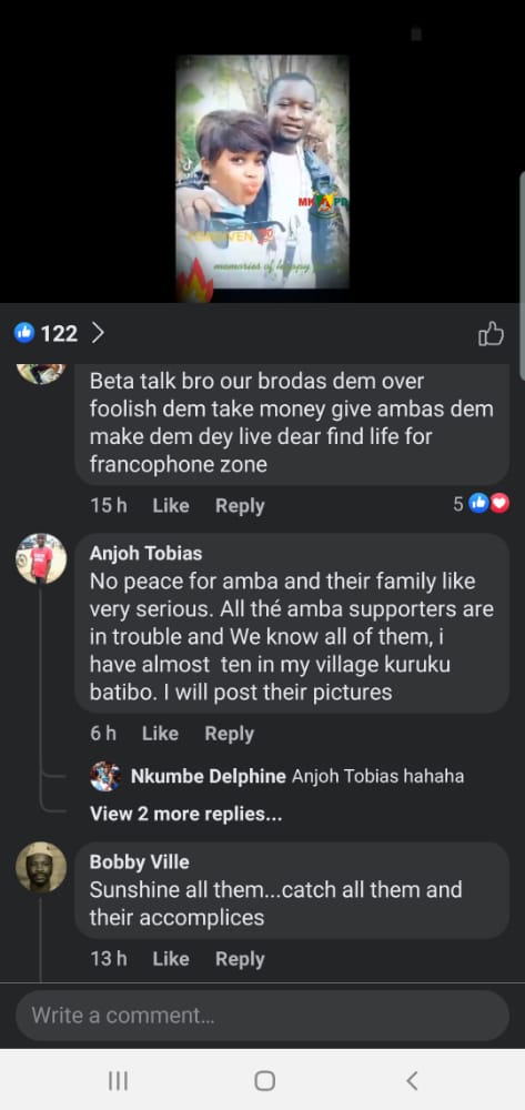 “If anyone knows the house of any Ambazonia fighter, they need to target their mother, father, child, and other relatives.”