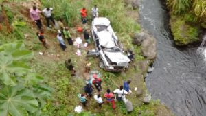 A source at the Buea Council told CNA that they went to Limbe Saturday April 14, 2018 to celebrate the birthday of the wife of Anyi Che Eugene, market master of Muea market in Buea. Upon returning from the birthday party Sunday afternoon en route to Buea, they were about 10 in two different vehicles. Our source says, he cannot really tell what happened because one version says the driver of the first vehicle attempted to escape an oncoming vehicle before landing down the river, while another blames the accident on exceed speed and drunkenness.