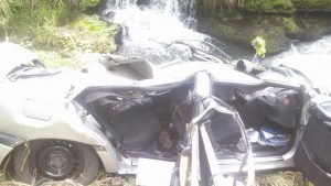BUEA,Cameroon-Sunday April 15, 2018-9:00 PM Local Time (Cameroon News Agency) The damaged nature of the vehicle tells the whole story. A tragic tale of five hefty men returning from birthday party from Limbe but could not reach their destination in Buea. Death snatched them in a wicked way, leaving families and friends to mourn their sudden departure. Their journey ended at the Ombe bridge in Fako division, South West region, among them, three workers from the Buea Council and two others.