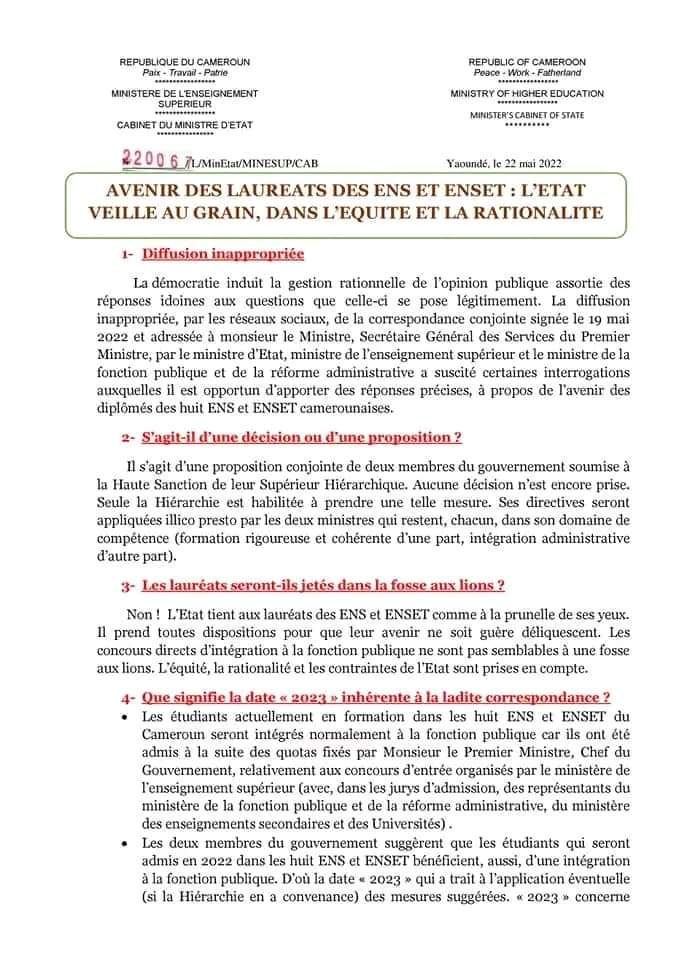 The information went viral on social media last week. Teachers, it was said, would no longer benefit from direct integration. Higher education minister Jacques Fame Ndongo has come to out to explain what the population should know about this measure.