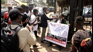 He came with a padlock and chain tied round his neck, holding a placard reading, ‘Issa Tchiroma and Charles Ndongo Wanted.’