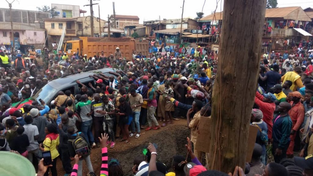 A condolence visit transformed into a political rally? Professor Maurice Kamto was received by an excited crowd n Gouache, Bafoussam 3 in the Werst region. The leader of the opposition MRC party, was in Bafoussam to pay a condolence visit to victims of the recent landslide which claimed the lives of dozens. This was the first time in almost one year and the first time the people of the region were meeting him after his arrest in January 2019.