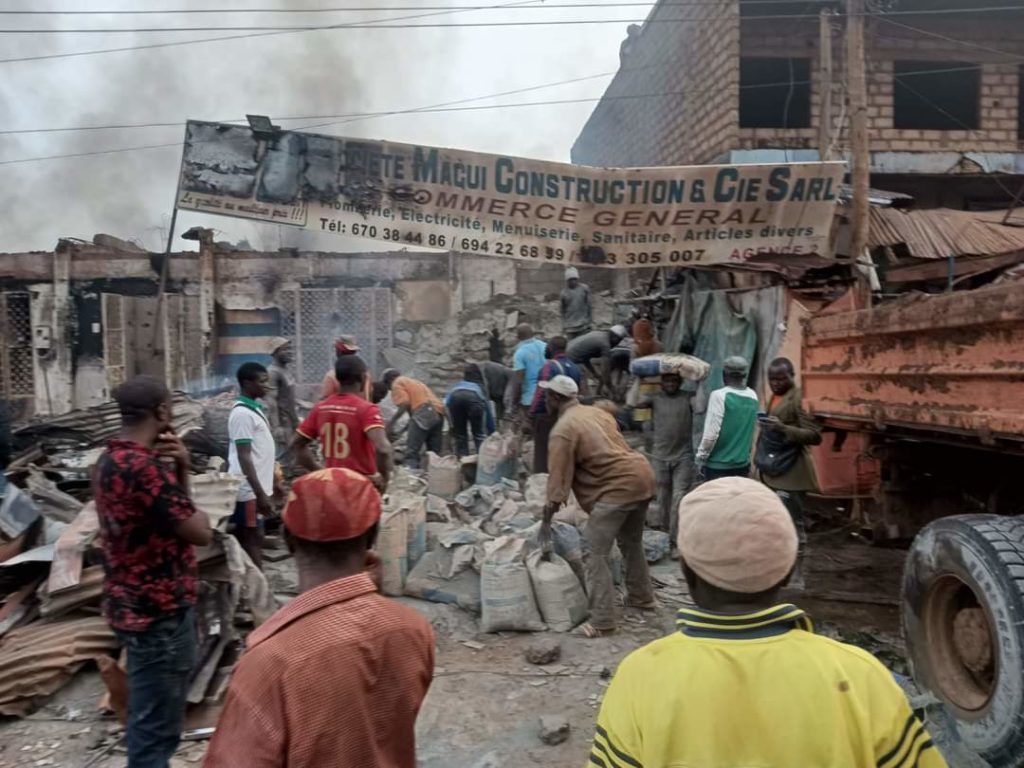 The flames whose origins remain unknown broke out at about 4am at “Ancien Bâtis”, on the main street of Mbouda, consuming shops containing construction materials, bikes, spare parts and other accessories.