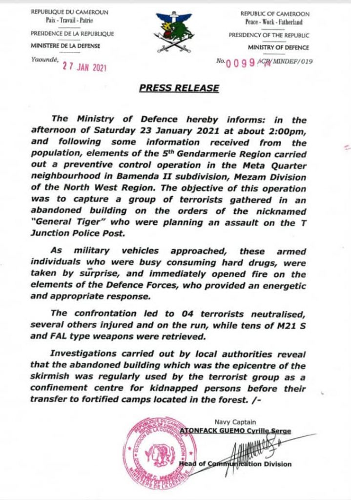 MINDEF has cooked lies from Yaounde to continue deceiving the international community.