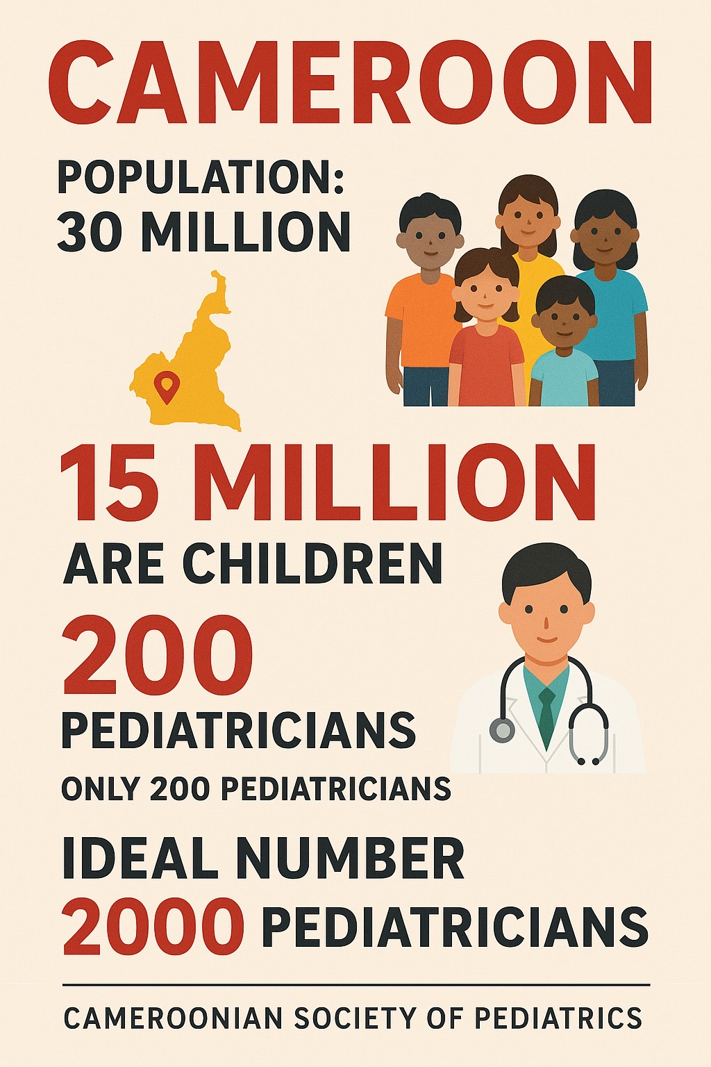 “We don’t only have pediatricians as members” the organization’s Secretary General, Prof. David Chelo told CNA, “We have just about 200 pediatricians in the country for 15 million kids and you can see how that is a problem Chelo says. “Most of them leave Cameroon every year, seeking better pay and opportunities abroad, but we need at least 2,000 pediatricians to be able to meet the country’s shortage”.