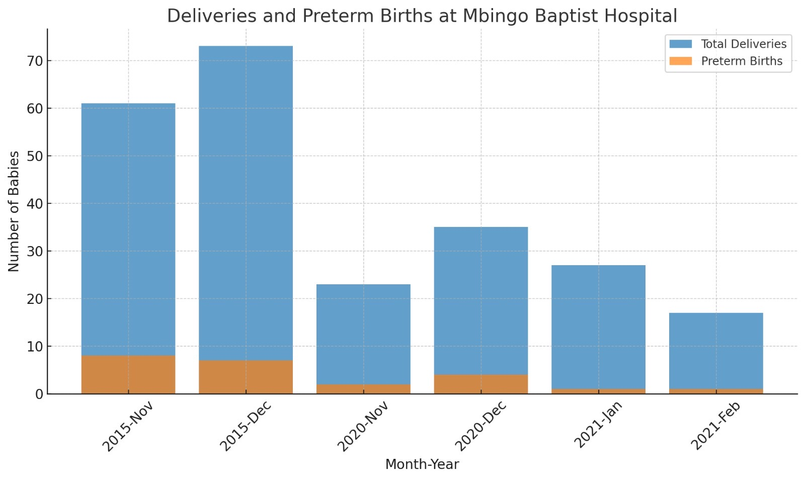By November 2020, just five years later, the combined effects of COVID-19 and the Anglophone Conflict, saw overall deliveries plummet to 23 with just 2 pre-term deliveries. This was because the COVID-induced shutdowns and the insecurity resulting from the Anglophone Crisis, caused movement to be impeded, medical staff are sometimes targeted and Mbingo is a village at the heart of the Anglophone separatist struggle.