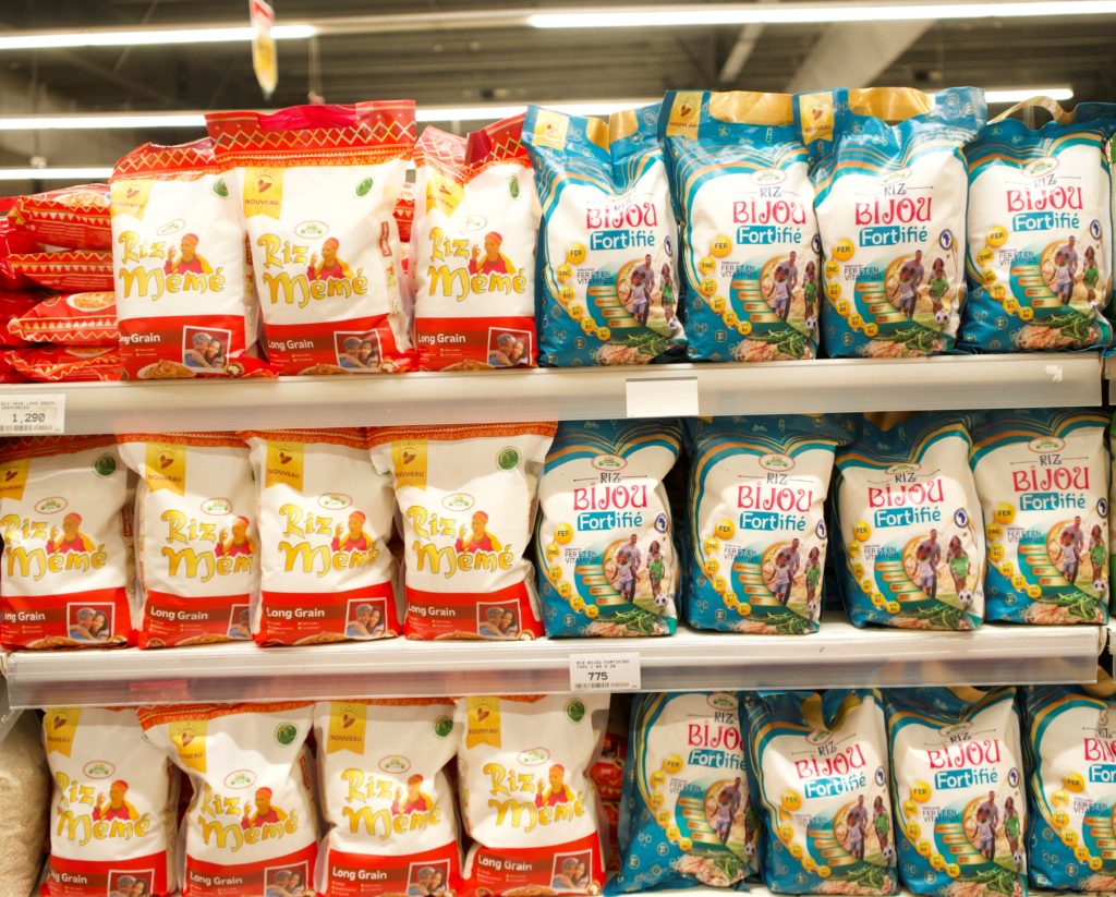 Riz Meme and Riz Bijou Fortifie displayed in supermarkets across Camerooon