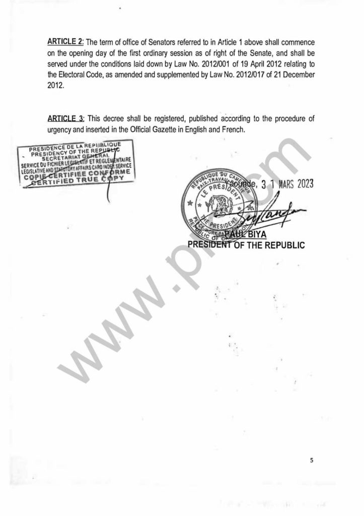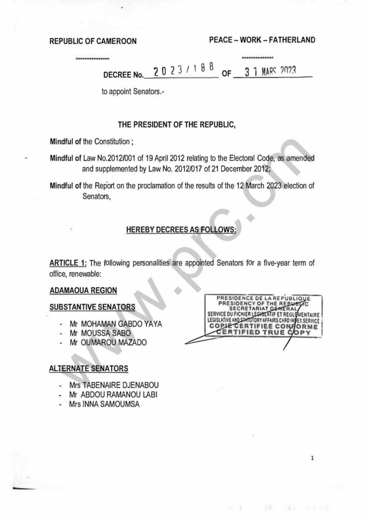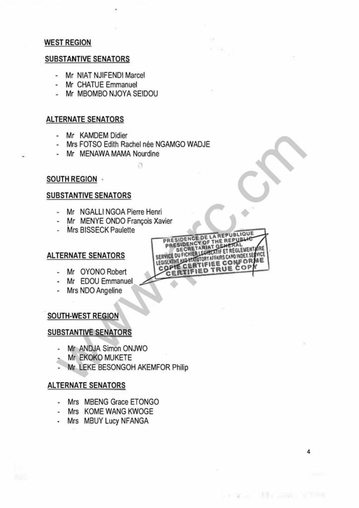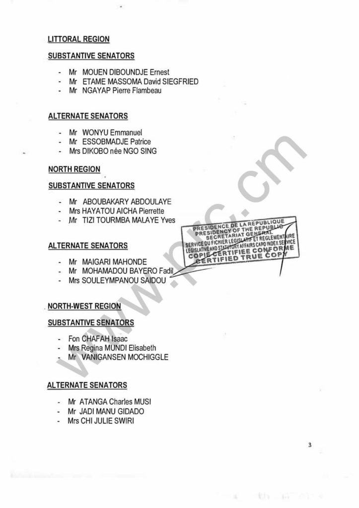The Upper House of parliament now has all its 100 members known. 30 senators were appointed this Friday March 31st by the Head of State, Paul Biya, to join the 70 others elected so that the Upper House can be complete.
