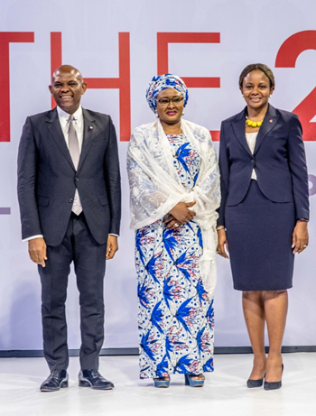 L-R: Tony Elumelu, Founder, The Tony Elumelu Foundation; Her Excellency Mrs. Aisha Buhari, First Lady of Nigeria; Dr. Awele Elumelu, Member, Board of Trustees, Tony Elumelu Foundation ; at the Selection and Unveiling of the 5th Cohort of the Tony Elumelu Foundation Entrepreneurship Programme held at the Transcorp Hilton Hotel, Abuja over the weekend.