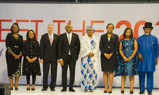 L-R: Ifeyinwa Ugochukwu, incoming CEO, Tony Elumelu Foundation; Parminder Vir, CEO, Tony Elumelu Foundation; Ambassador Shimon Ben-Shoshan, Ambassador of Israel to Nigeria; Tony Elumelu, Founder, Tony Elumelu Foundation; Her Excellency Mrs. Aisha Buhari, First Lady of Nigeria; Dr. Awele Elumelu, Member, Board of Trustees, Tony Elumelu Foundation; Ambassador Yvonne Khamati , Deputy Ambassador to Kenya; HRH Ebitimi Banigo, King of Okpoama kingdom; at the Selection and Unveiling of the 5th Cohort of the Tony Elumelu Foundation Entrepreneurship Programme held at the Transcorp Hilton Hotel, Abuja over the weekend.