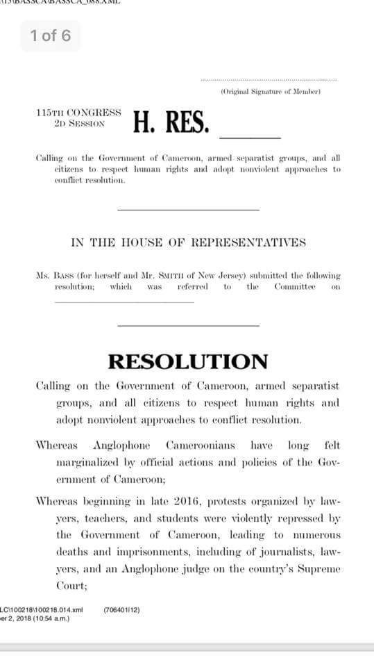 The US Congress has called on the Cameroun government to fasten dialogue process so that calm will return in the region.