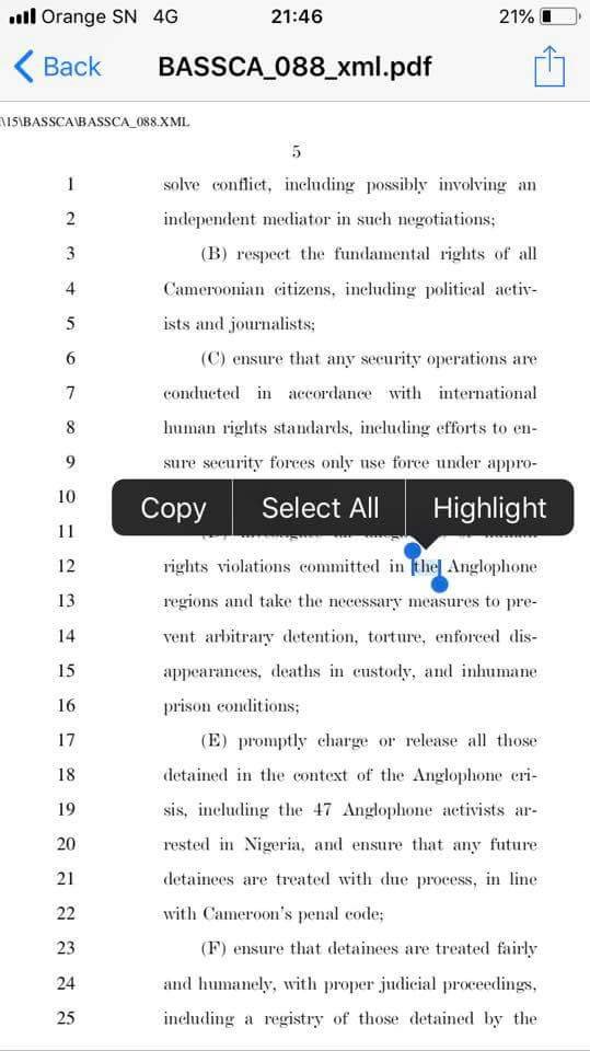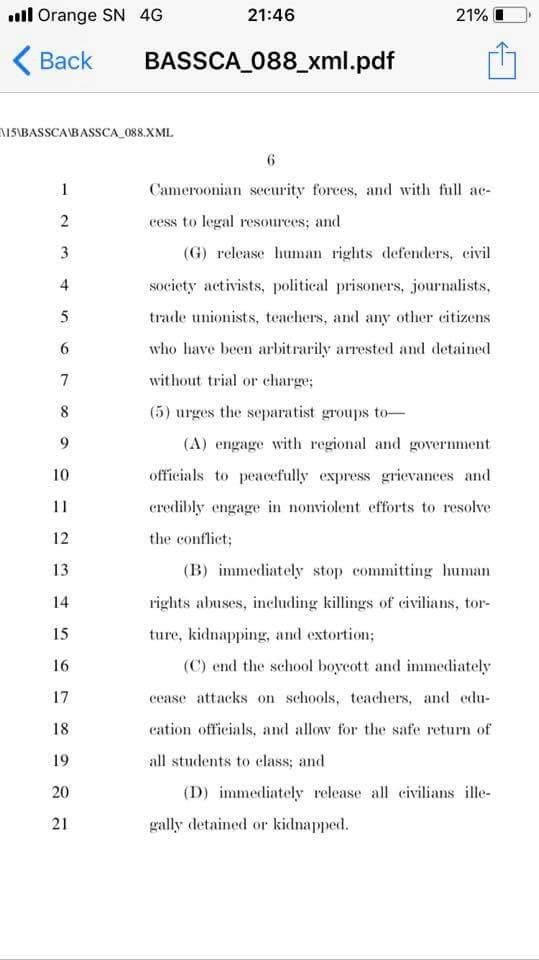 The US Congress has called on the Cameroun government to release Sisiku Ayuktabe and 46 other persons arrested in Nigeria and repatriated to Cameoun.
