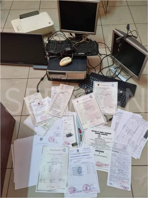 She is known in the neighborhood and environs as a specialist in the production of fake school certificates, birth certificates and other administrative documents which were found in a secretariat managed in her home. In her possession at the time of arrest were two computers, four USB flash drives containing falsified bank and court documents and a photocopying machine. All these items were confiscated by the gendarmes who say they are still investigating the case.