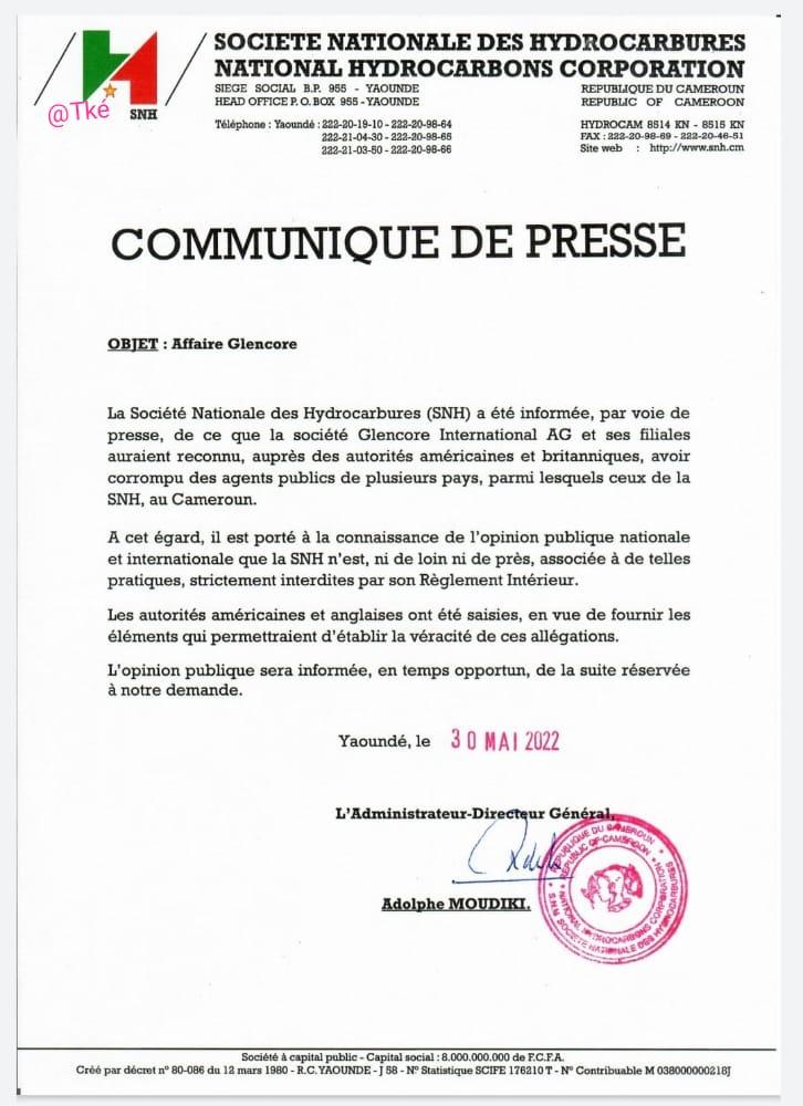 The General Manager of the National Hydrocarbons Corporation, SNH, Adolphe Mudiki, has said that they only heard about the FCFA 7 billion alleged bribery given to SNH by Glencore to secure contracts.
